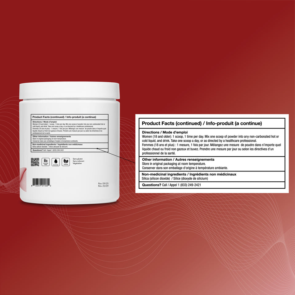 Women (18 and older): 1 scoop, 1 time per day. Mix one scoop of powder into any non-carbonated hot or cold liquid, and drink.