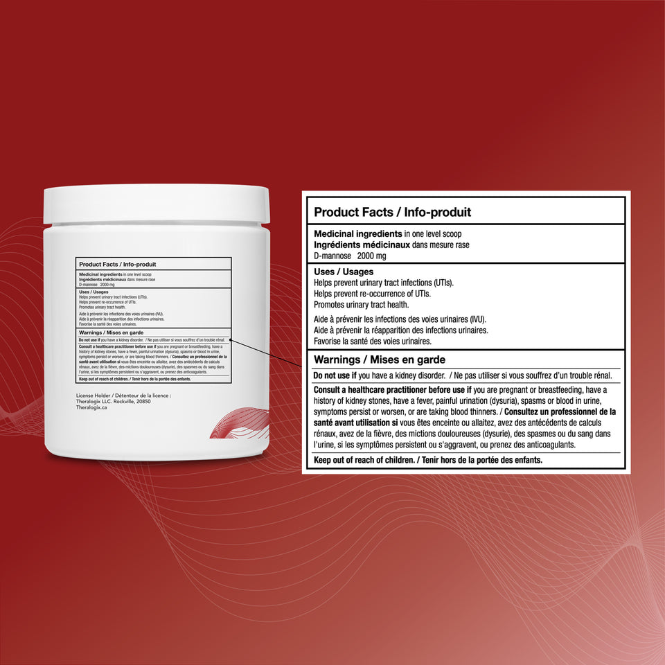 - इसमें 2,000 मिलीग्राम डी-मैनोज़ होता है, जो मूत्र मार्ग से बैक्टीरिया को बाहर निकालने के लिए शोध-समर्थित खुराक है।